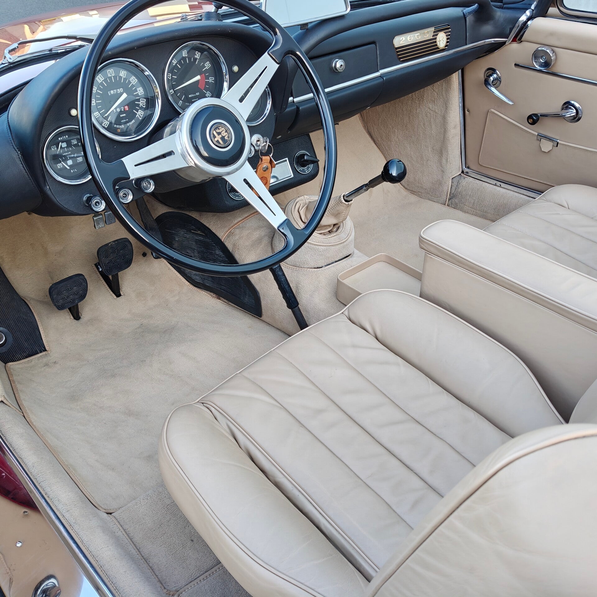 Vandaag presenteren wij u een bijzonder goed gedocumenteerd exemplaar, waarbij de afgelopen decennia consequent werd geïnvesteerd in behoud en verbetering. De wagen verkeert dan ook in een uitstekende staat en is uitgerust met de zeer gegeerde Borrani-velgen, die perfect aansluiten bij zijn exclusieve karakter. Daarnaast zijn ook de originele velgen aanwezig, samen met een prachtig gerestaureerde hardtop, de originele Solex 44PHH-carburateurs, en de bijhorende toolset en krik.